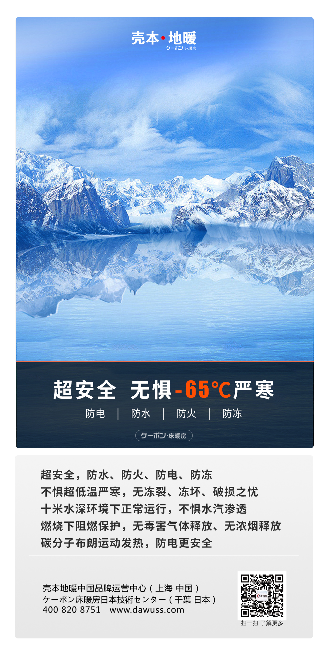 以上評估指標關系用戶的切身利益,所以在選擇地暖系統時就必須認真評估。殼本地暖屬于無水地暖,所以完全沒有漏水故障可能造成的財產安全問題,同時殼本地暖的電熱轉換媒介是非金屬材料長絲碳纖維,其發熱原理非電阻發熱而是碳分子布朗運動發熱,完美避免了漏電可能造成的生命安全問題,于此同時不會產生電磁輻射健康危害。并且碳纖維極好的耐腐蝕性可以保證碳纖維地暖極長的壽命,50年免維護。